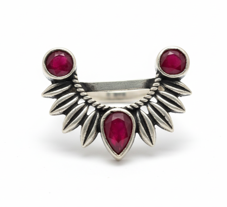 Agni captures the perfect balance of fiery intensity and elegant craftsmanship. Its striking red glow speaks to passion ignited, while the silver frame adds a touch of refined poise. This piece commands attention, making a bold statement wherever it goes. Embrace the power and grace that only Agni can deliver.