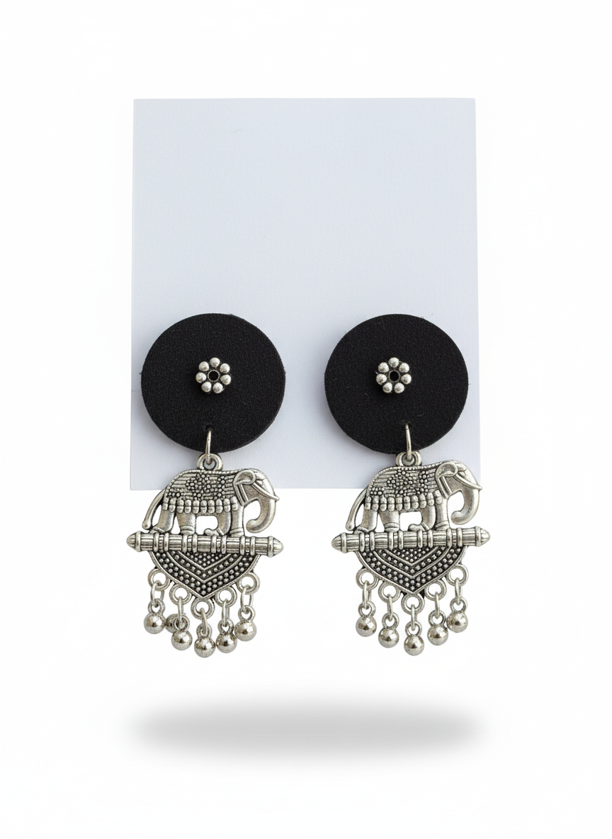 Immerse yourself in tradition with these oxidized jhumkas, delicately adorned with subtle bell-like charms. Each piece captures the essence of joyous celebrations and timeless Indian rituals, echoing the rhythm of dance and storytelling. Perfect for adding a touch of cultural elegance to any outfit, these earrings celebrate movement and the rich heritage behind every festive moment.
