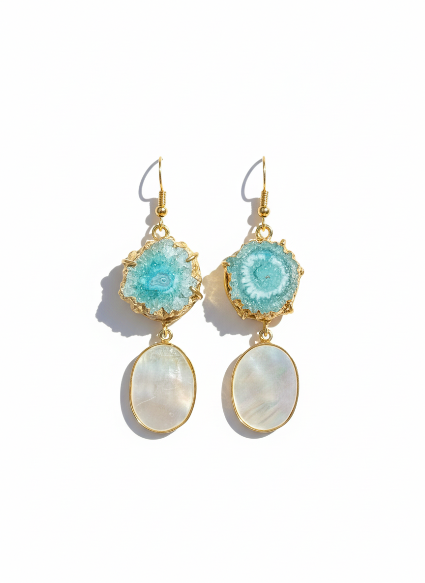 Experience the serene beauty of nature with Jal Leher. Featuring a soft aqua stone that captures the peaceful essence of rivers and oceans, this piece is enhanced by unique oxidized artistry. Jal Leher is more than jewelry—it’s a daily reminder to embrace calm flow and timeless elegance in your life.