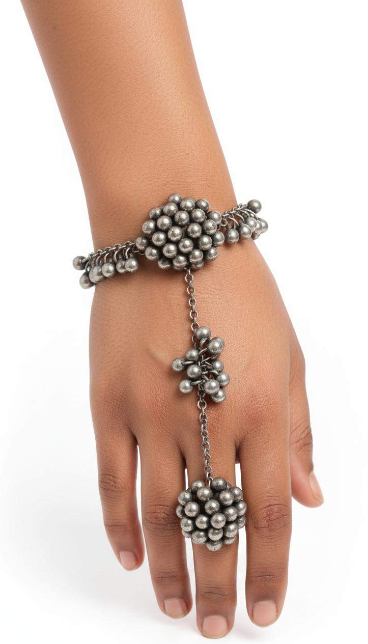 Kangani captures the essence of heritage and elegance in every step. Crafted in oxidized silver, it blends rhythm and grace to celebrate strength and femininity. This piece is more than an accessory—it’s a timeless story you wear with confidence.